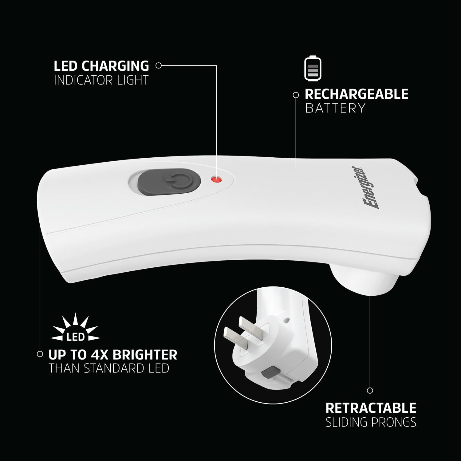 [Convenient Handheld Flashlight]: Compact LED flashlight plugs into the wall with retractable prongs for convenient use and easy charging