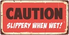 TIN SIGN "Caution Slippery When Wet" Humorous Signs Garage Wall Decor