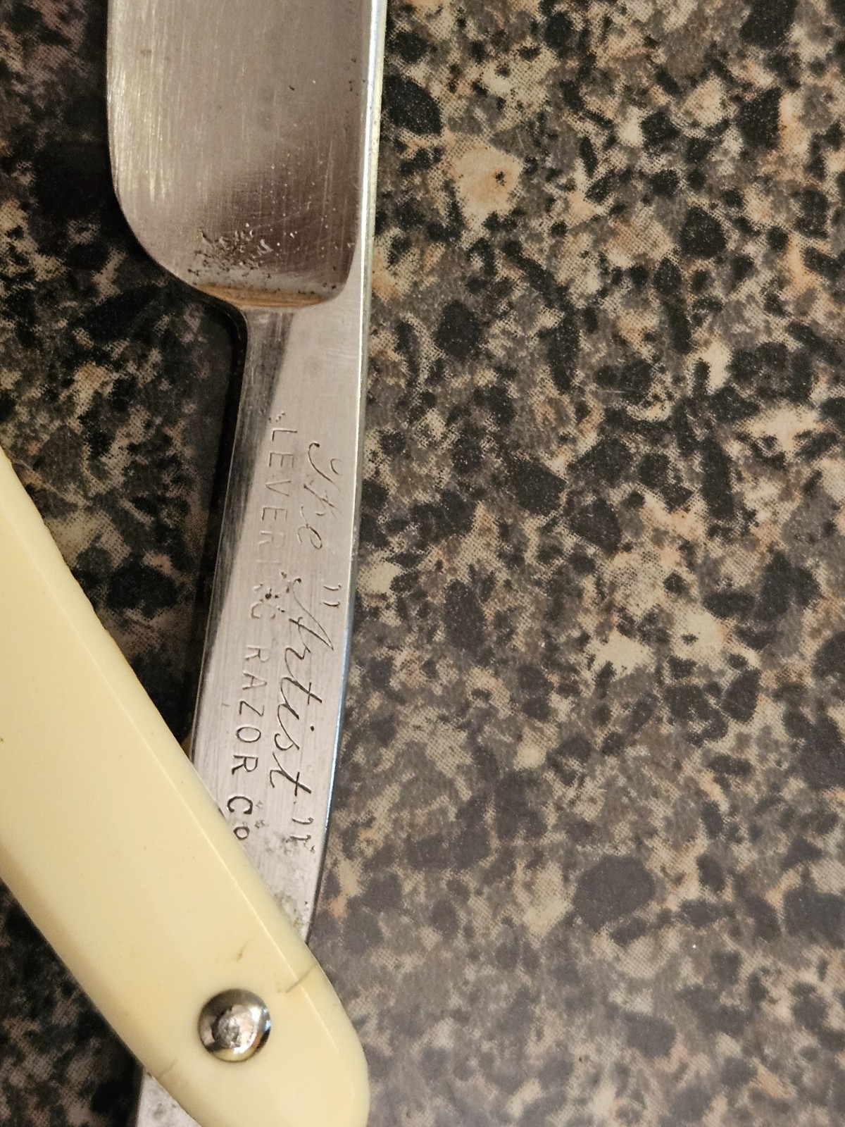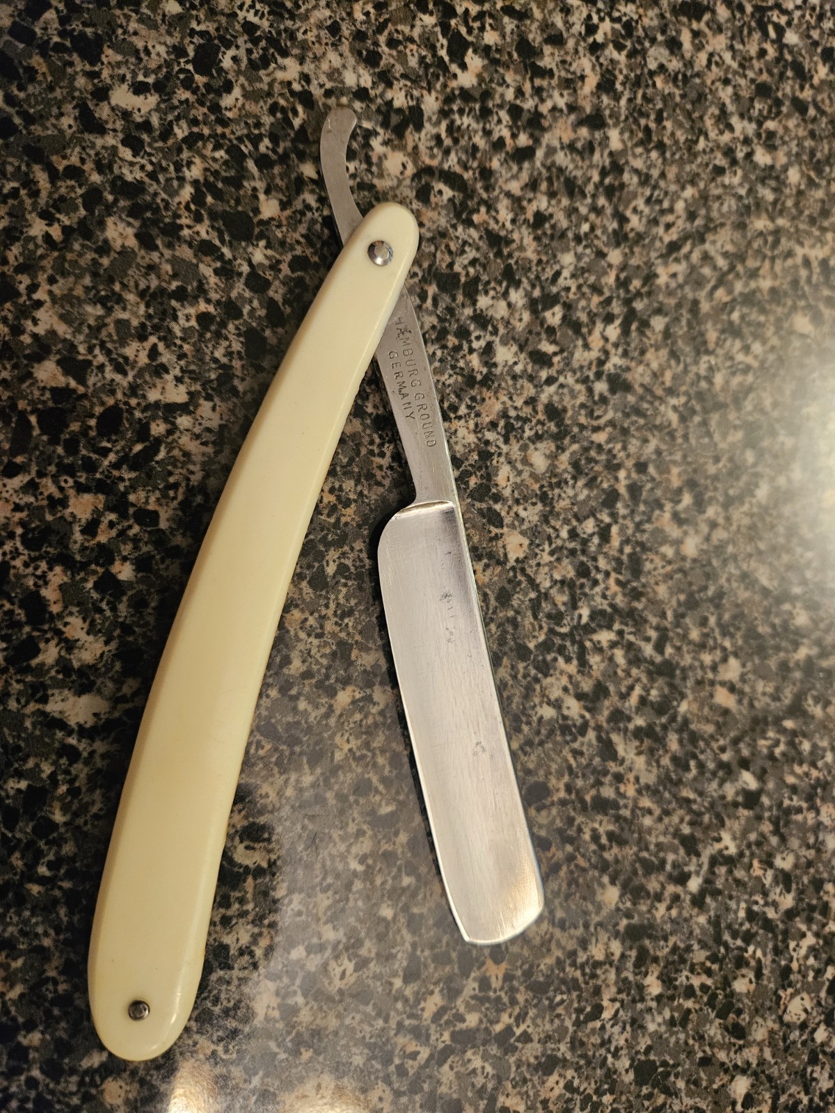 This is a beautiful vintage "The Artist" straight razor produced by the Levering Razor Co. The blade features the "Hamburg Ground" stamp, indicating high-quality German craftsmanship.