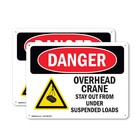 (2 Pack) Overhead Crane Suspended Load OSHA Danger Sign Decal Metal Plastic