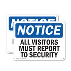 All Visitors Must Report To Security OSHA Notice Sign Metal Plastic Decal