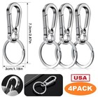 4Pcs Keychain Key Ring Carabiner Clip Keyring Chain Fob Holder Silver Metal USA