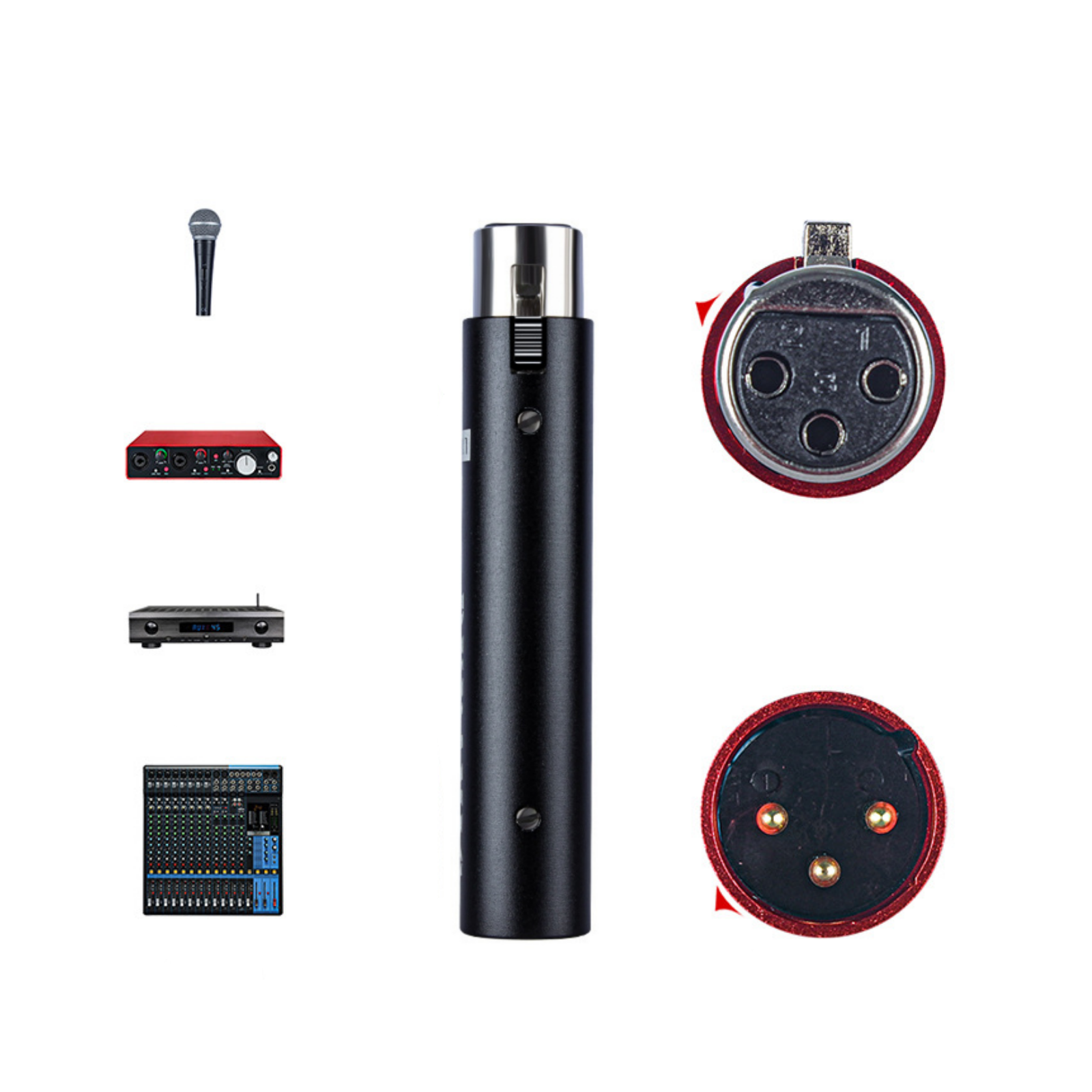 1. Plug and Play: Connect the amplifier directly to the mixing console, and turn on the 48V power supply of the sound card at the microphone input interface to provide power to the microphone amplifier. This provides a fixed gain volume of+28DB, which is simple and convenient (capacitor microphones that require power are not suitable because the amplifier will deplete the 48V power supply).