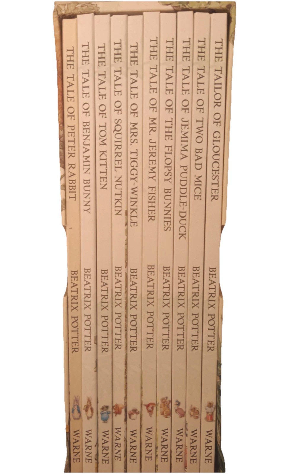 This listing is for the Peter Rabbit Library boxed set which includes 10 books. It's in good condition with minimal markings This vintage boxed set is from 2006. The Peter Rabbit book is in good condition with minimal markings however it has yellowed a bit from age. (As can be seen in the pics). The rest of all the other books haven't been opened or read and are still in brand new condition. Together this makes a beautiful complete set and lovely gift. Shipping is for Continental US. 🐰