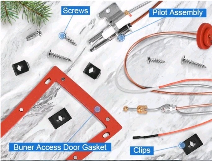 • Includes: Pilot Assembly, Burner Door Gasket, Clips (4), Screws (5)