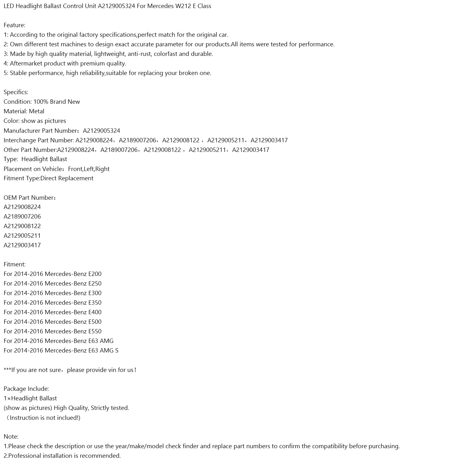 Other Part Number:A2129008224,A2189007206,A2129008122 ,A2129005211,A2129003417