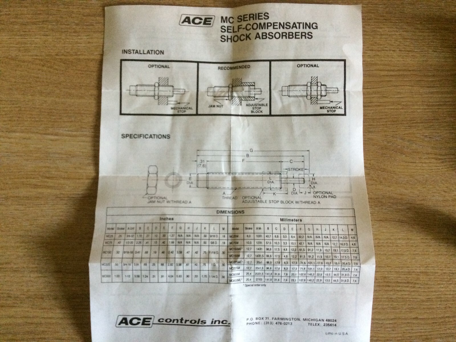 MC 150-H, ACE Controls Shock Absorber