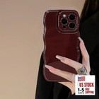 Phone Case Case,Simple Wave Design Wavy Frame for iPhone 16 Pro Max Wine Red