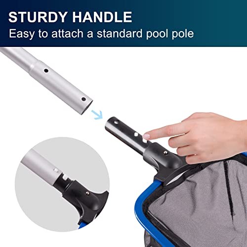 EASY TO FIT ANY STANDARD POOL POLE: This fine mesh pool skimmer net easy to fit into a standard pool pole (pole is excluded but available in our store), this reduces risk of pinching fingers