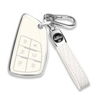 for Chevy Key Fob Cover with Keychain Soft TPU 6-buttons Chrome-white
