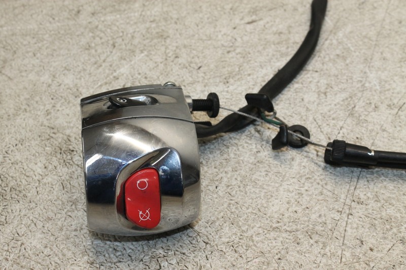 This right switch is in good condition and shows normal signs of wear. ONE SCREW IS ROUNDED. COMES WITH THROTTLE CABLES