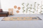 Vintage Runner Rug, 2,5x9,1 ft Turkish Rug, Beige Animal Print Wool Rug