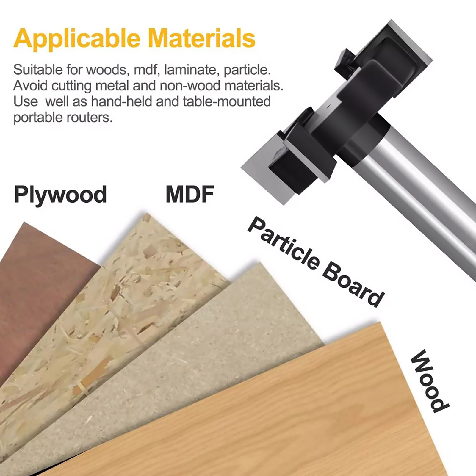 It is suitable for use on wood, MDF, laminate, particleboard, plywood, acrylic, and similar materials. However, avoid using it on metal or non-wood materials to prevent damage.