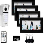 7 Inch 4 Unit Video Intercom System for Apartment, Wired Cable & Touch Screen