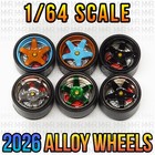 1/64 Scale ALLOY WHEELS with BEARINGS Real Rider Wheels Rims Tires Set for Hot