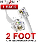 2 Foot Short Telephone Cable RJ11 (6P4C) 24 Inch Phone Line Cord, White