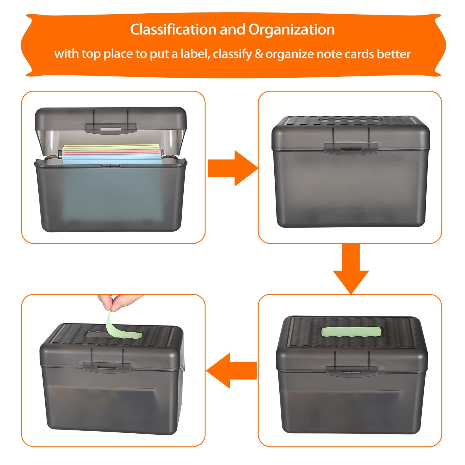 Multi-Function: The plastic storage container box not only can help effectively store your index cards and postcards, also Ideal for storing game cards or similar size recipes, business cards, filing notes, flashcard, addresses, and other smaller desk accessories.