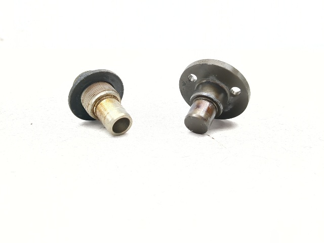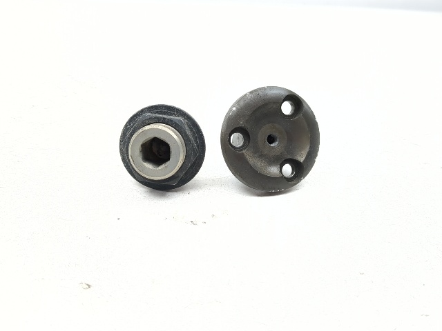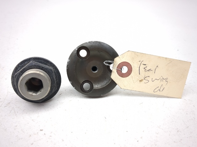 Swingarm Pivot Pin Set - Pair of rear swingarm mounting pivot pins including the left-side threaded journal bearing pin (12mm internal hex) and the right-side 3-bolt fixed bearing flange. Fits 2005-2013 BMW R1200RT, R1200GS, R1200R, and R1200ST models. Structurally sound, good used condition. OEM 33177684992, 33177665417.