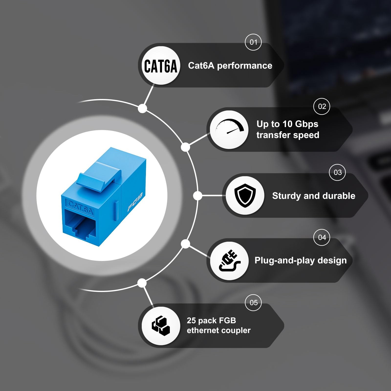 10 Gbps CAT6A RJ45 Keystone Coupler 25-Pack, RJ45 Keystone Jack, Ethernet Cou...