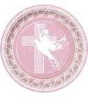 Pink Dove Cross Luncheon plates (8pcs) 9" dia Communion Confirmation baptism