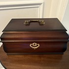 Wooden Jewelry Box Brown Velvet Lining Lockable Brass Handle Organizer Rectangle