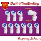 10 Pcs 1/4"-1/4" Quick Connect Elbow Connector Fittings Push In RO Water Filter
