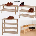 Natural Wood Shoe Rack Slatted Organizer Shelf for Entryway or Closet