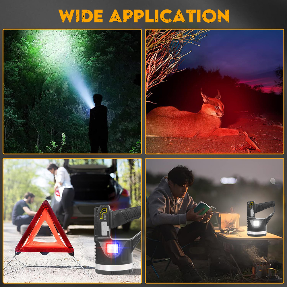Fast Charging & Power Bank Functionality: Never get caught with a dead light or device again. This rechargeable spotlight fully charges in short hours and doubles as a portable power bank—perfect for juicing up your phone, tablet or other gadgets during camping trips or blackouts. The built-in easy-to-read power display keeps you informed of remaining battery life, so you’ll always know when it’s time to recharge. Stay powered up, day or night.