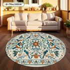 100cm*100cmof Vintage Green Floral And Bird Patterned Outdoor Round Rug Made of