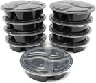 Meal Prep 48 oz Three Compartment Food Containers with Lids 10 Pack Black Round