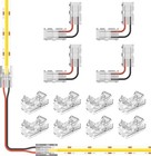 COB 2PIN 10mm LED Strip Connectors Kit 10pcs, Transparent Solderless T/L Shap...