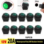 10X12V 20A Green Waterproof Round On/Off Rocker Switch Car Auto Boat SPST Marine