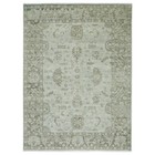 Cream Hand Knotted Wool Rug | Faded Blue-Green Geometrical Turkish Oushak Rug