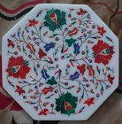 12" antique white Marble side Coffee Table Top malachite round Inlay lapis decor