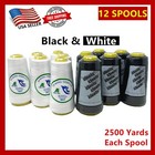 12 Big Spools Sewing Thread Polyester WHITE & BLACK 2500 yards each Spool NEW