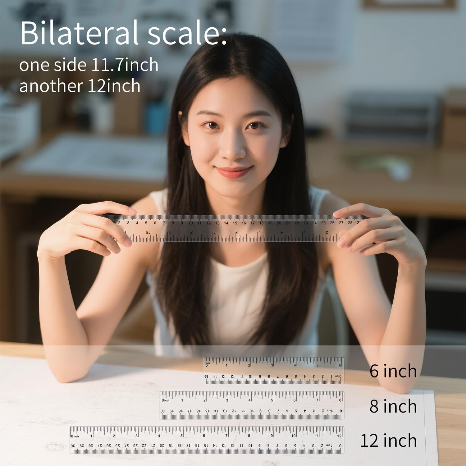12 Inch 8 Inch 6 Inch Ruler Set, Clear Plastic Measuring Rulers in mm and Inches