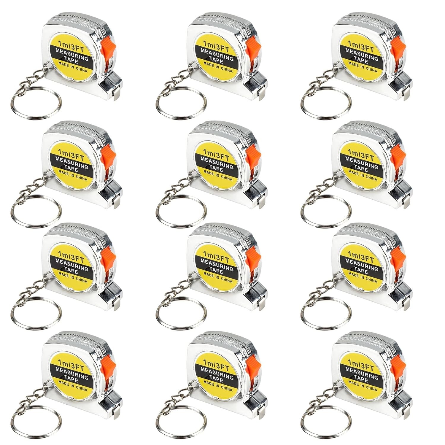 12 Pack 3ft Mini Tape Measure Keychain, Sliver Portable Retractable Small Tap...