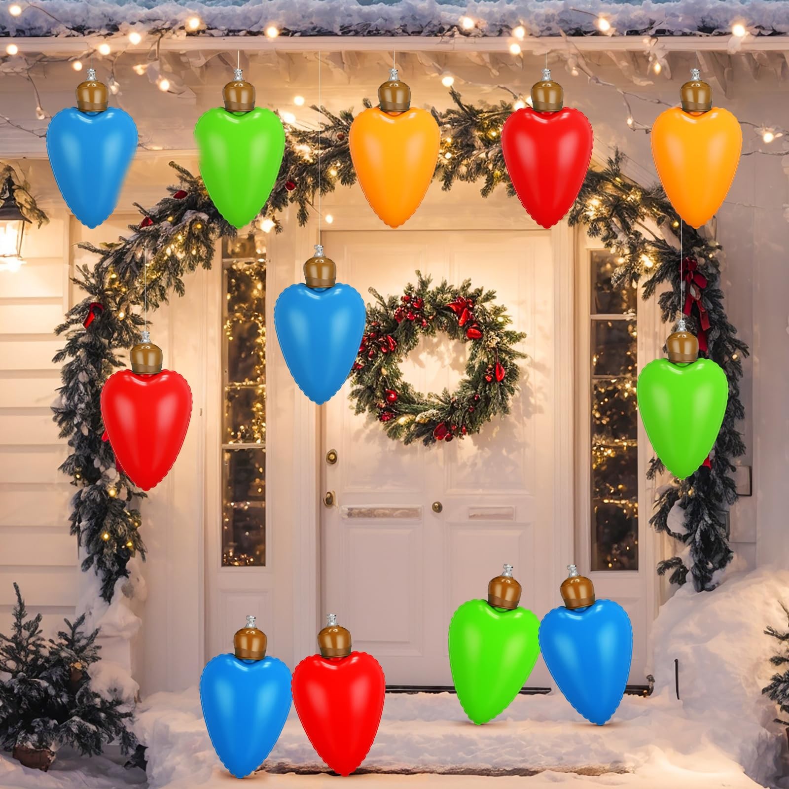 Ideal Size: this large outdoor Christmas Blow up ornament measures 10 inches long, making it even more eye catching; Hang them as outdoor decorations or decorate them in your yard, lawn, porch, and other places; The colorful lights will be clearly visible to your family and friends from a distance, creating a cheerful Christmas atmosphere and adding more fun to your party, event, or New Year's holiday