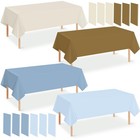 12Pcs Baby Shower Disposable Plastic Tablecloth,Ivory Brown Blue Rectangle Ta...