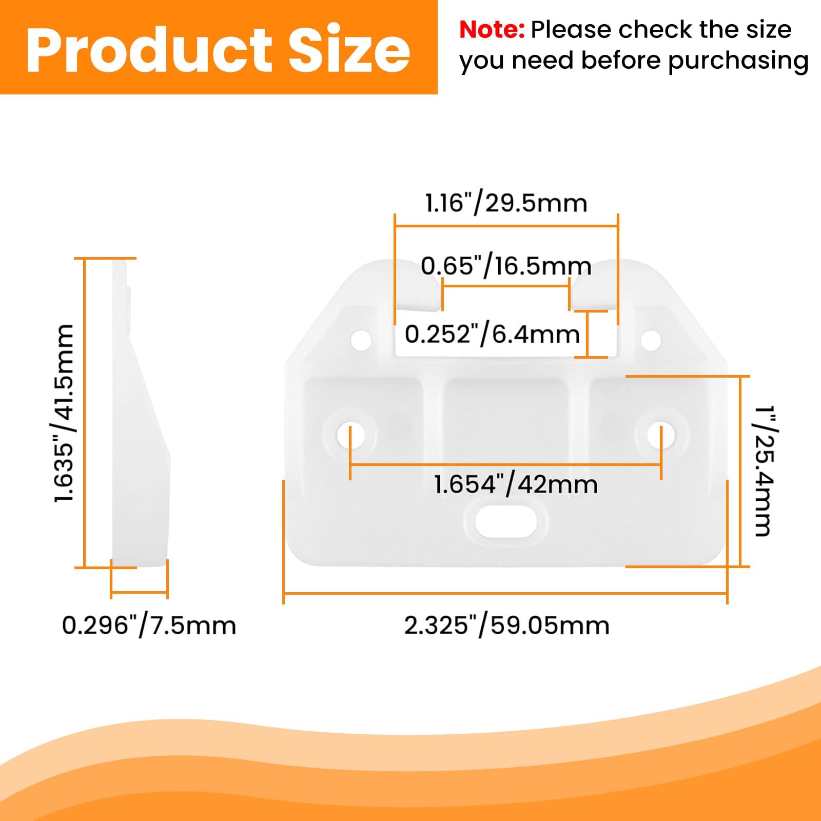 【Size】2.325 x 1.635 x 0.296 inch / 59.05 x 41.5 x 7.5 mm (L x W x T); Dimensions suitable for drawer track applications: 1.16 x 0.252 x 0.65 inch / 29.5 x 6.4 x 16.5 mm. Please make sure the size before ordering.