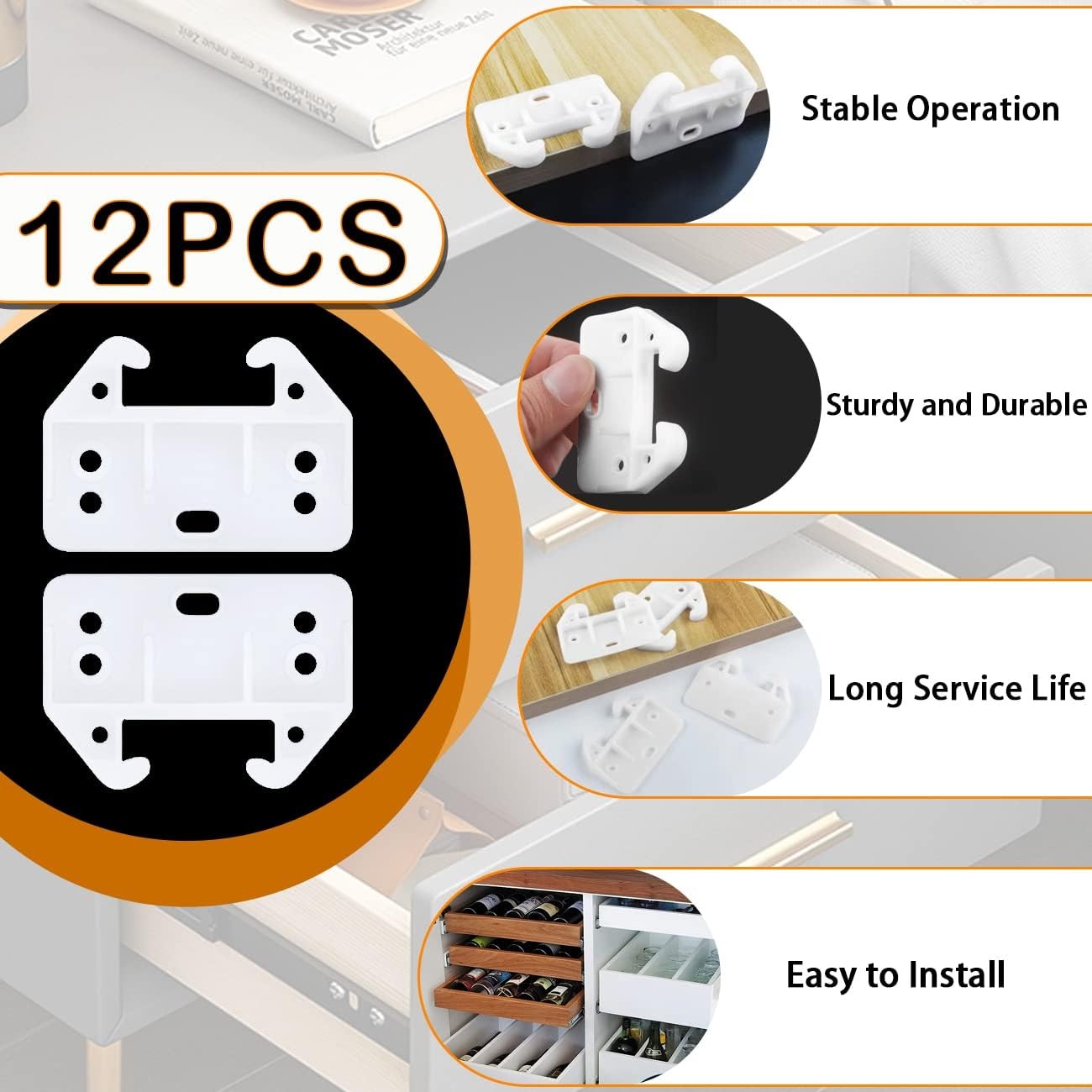 【What You Get】There are 12pcs plastic drawer guides and 36pcs screws in this package, enough quantity for you to use and replace.