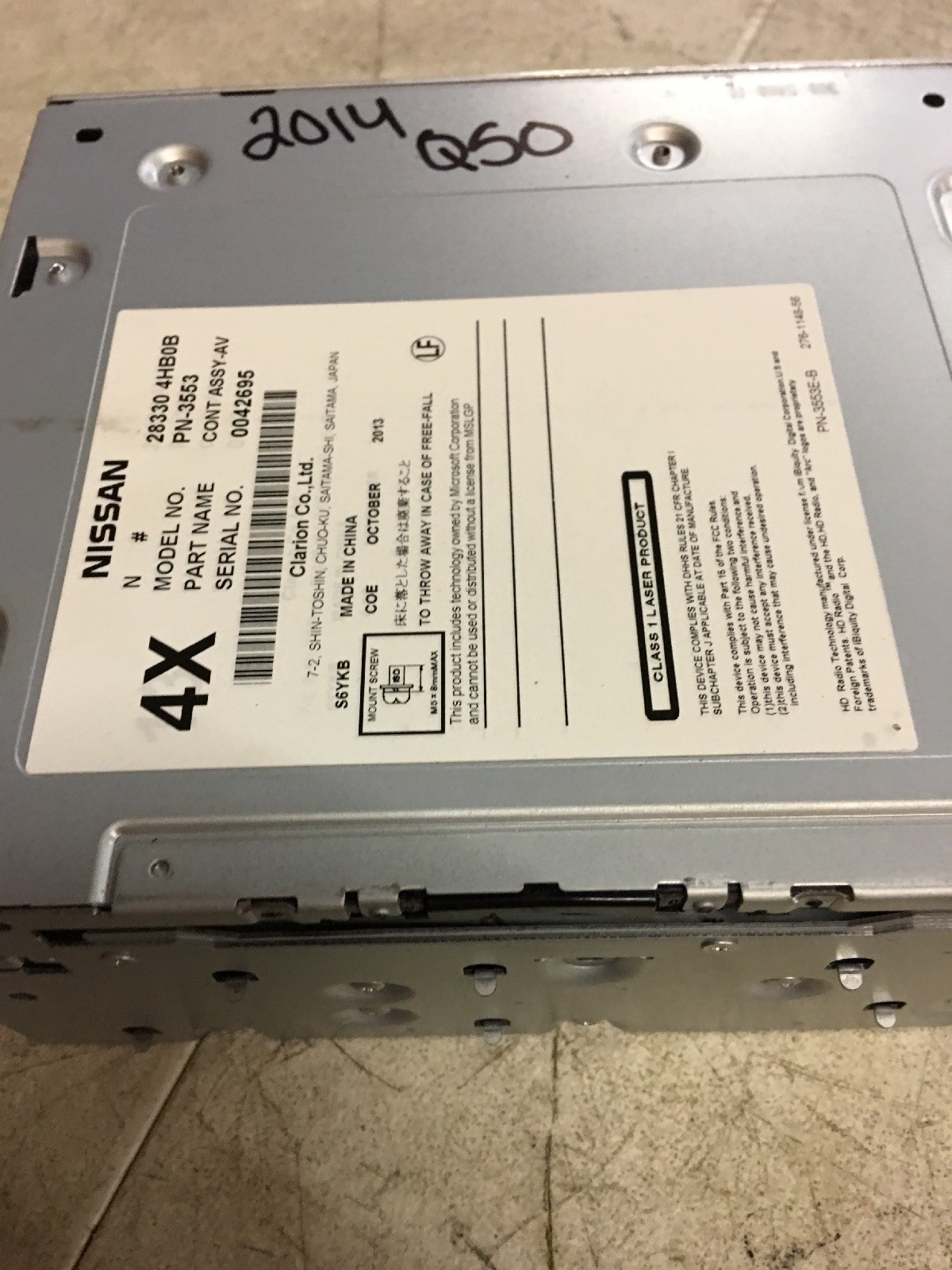 2014 2015 2016 14 15 16 Infiniti Q50 Radio Cd Mechanism 28330-4HB0B Bulk 23