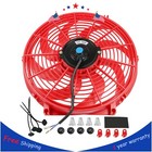 Red 12V 14" inch Universal Slim Fan Push Pull Electric Radiator Cooling Kit