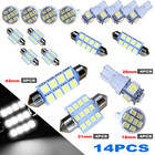 14PC White LED Car Interior Inside Light Dome Trunk Map License Plate Lamp Bulbs