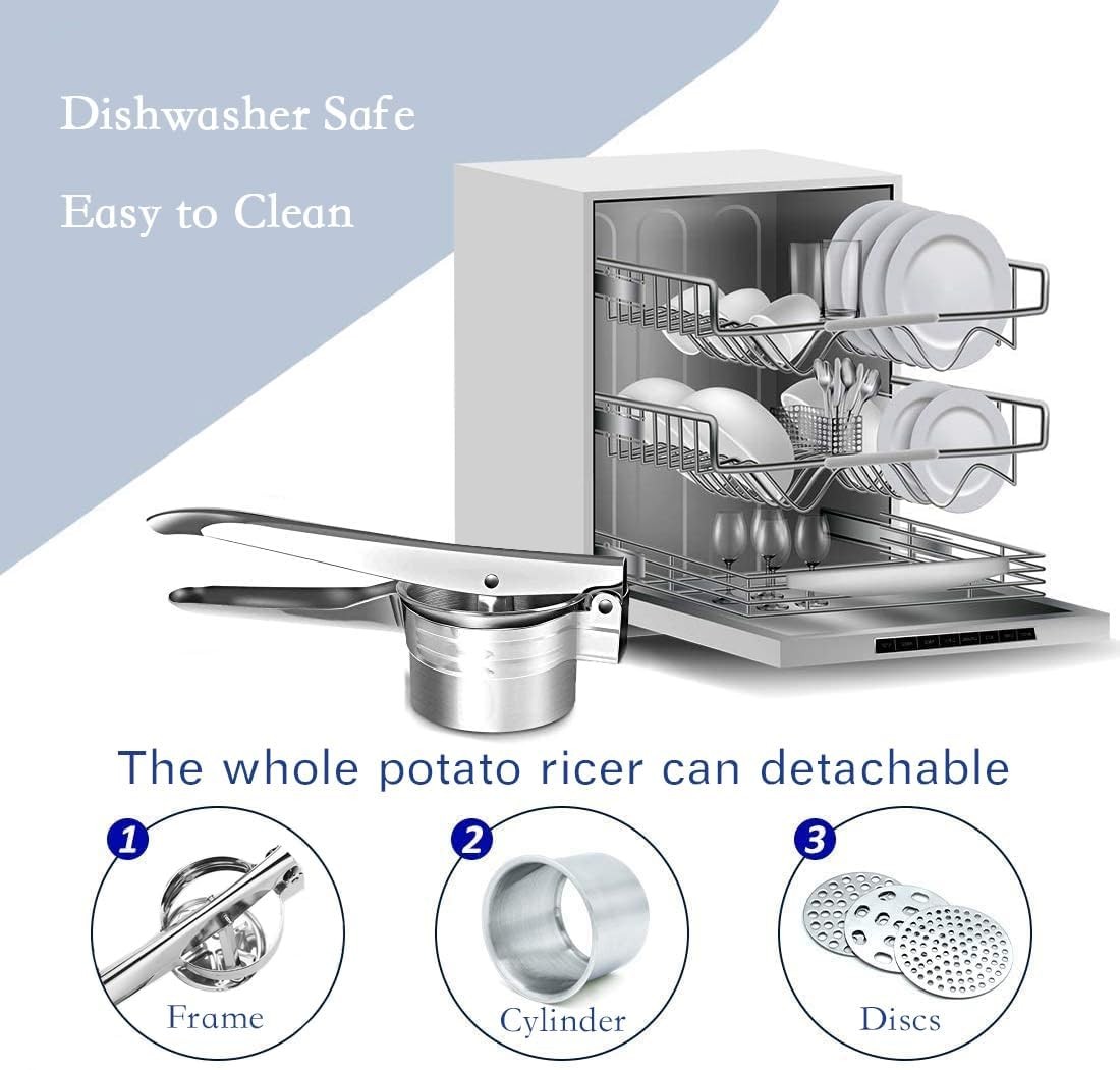 Easy to Clean - Cleanup is a breeze with our potato ricer. Just rinse with water immediately after use. Any food residue can be effortlessly washed away with water or conveniently placed in the dishwasher for added convenience.