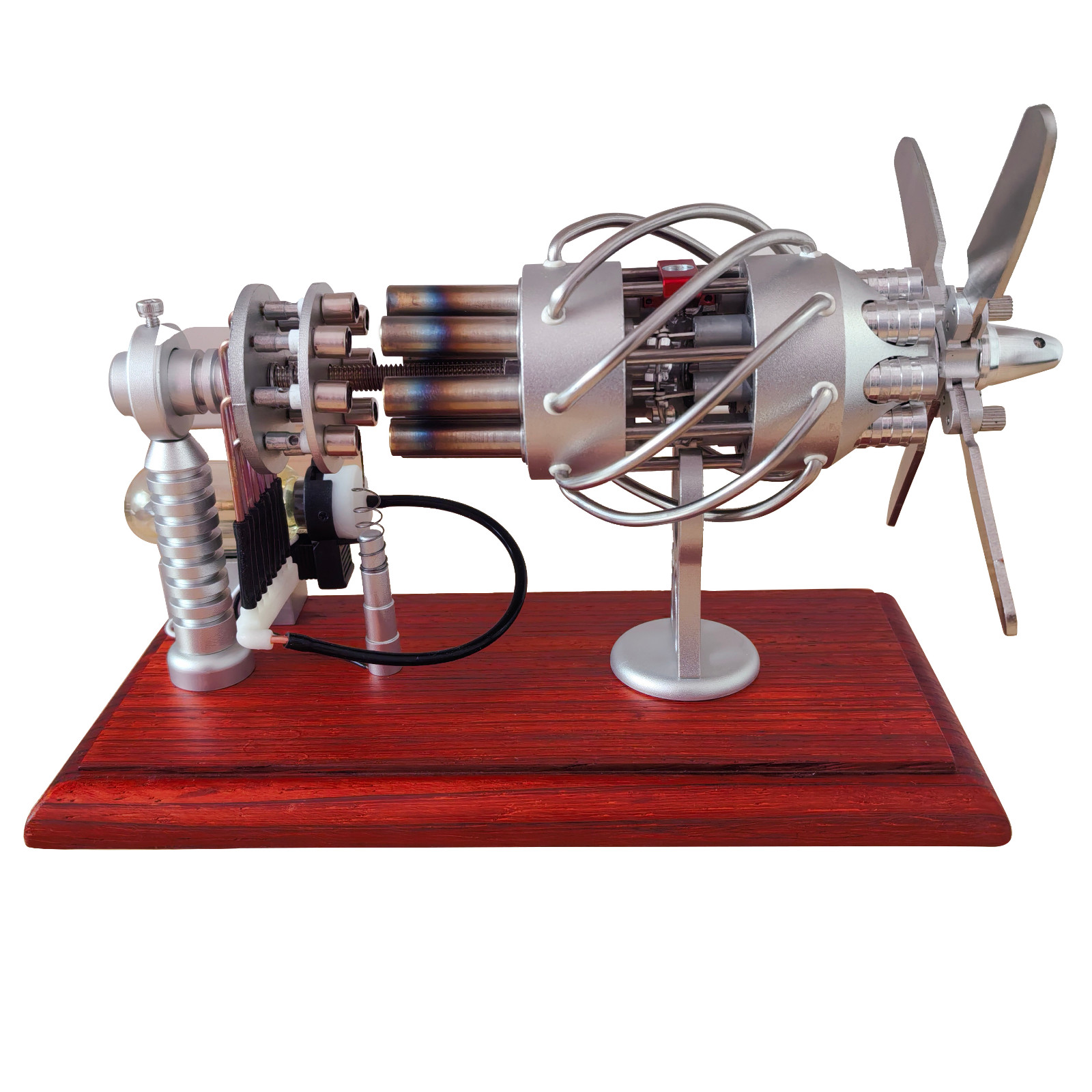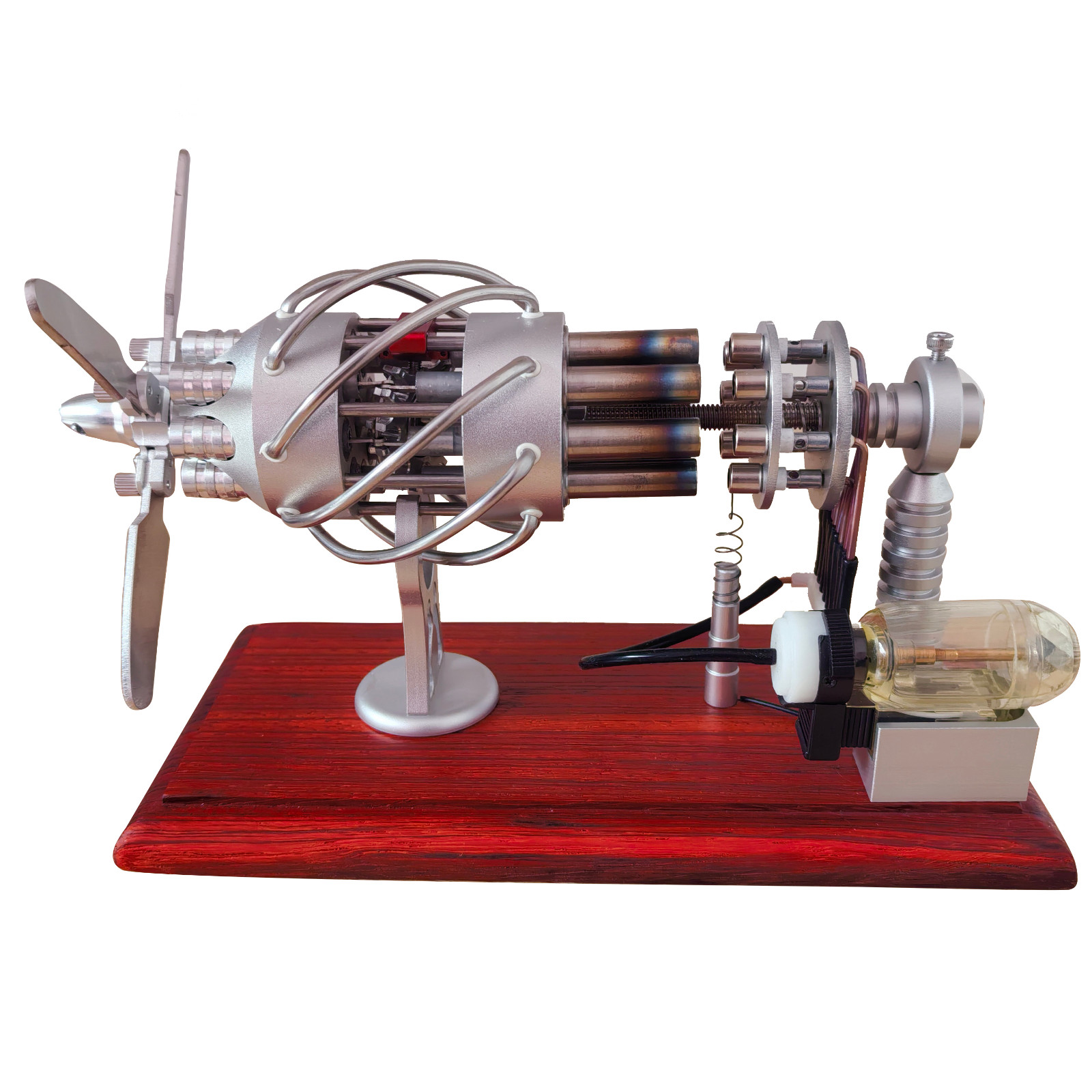 Powered by external heat, this elegantly designed engine vividly demonstrates the principles of Stirling motion. Ideal for STEM education, mechanical enthusiasts, or as a unique collectible gift for those who appreciate fine mechanical art.