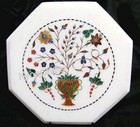 12" White Marble Inlay Table Top, Taj Mahal Work Handmade Home Decore, Gift .