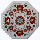 15 Inches Marble Coffee Table Top Floral Art Inlay Work Corner Table for Hallway
