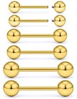16G 14G 12G Gold Nipple Piercings Tongue Rings Externally/Internally Threaded...