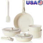 17-Piece Non-Stick Ceramic Cookware Set with Detachable Handle, White Granite